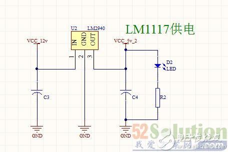 经综合考虑,本电路采用LM1117-3.3和LM2940-5电源部分的核心芯片。电池电源经过LM2940-5降到5V后在输入LM1117-3.3稳压为3.3V。由于电机部分电流较大,故在飞控电路部分加入了过流保护,使用500mA的保险丝。电路图如下。