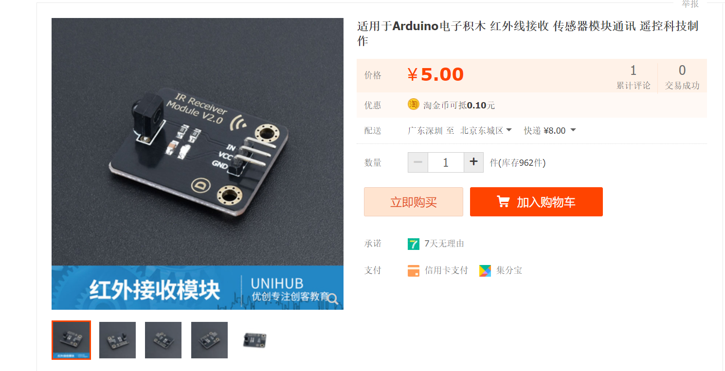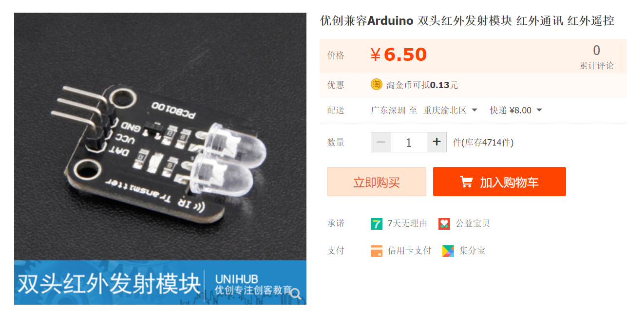图3: 这是红外线发射管,如果自己想做遥控器的发射端,自己做遥控器,那么就可以直接购买这种模块即可。