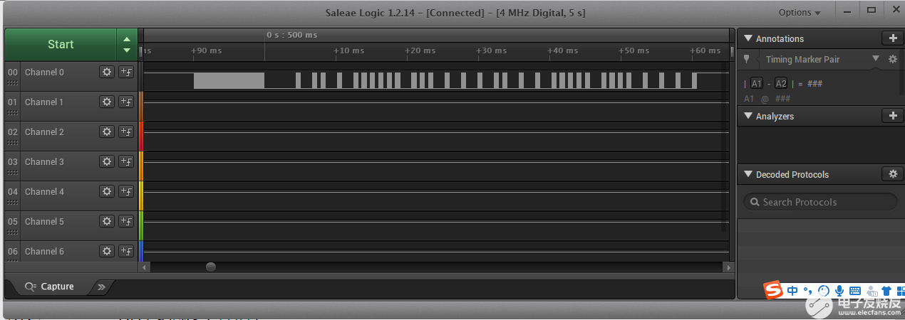 这是使用逻辑分析采集红外线接收头输出的信号: