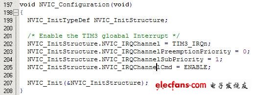 (4) 到stm32f10x_it.c中作修改中断处理函数如下: