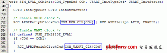 这个函数中用到了如上图中蓝色框中的一些符号,又是一系列的转换,用刚才所说的跟踪方法,找到这些符号的原始出处,作出修改,最后得到的STM_COMInit函数如下: