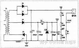 该装置的充电模块充电电路主要是对电瓶车蓄电池进行充电。次级绕组接D1、D2、D3和D5构成二次整流电路,470UF的电解电容C8电容滤波电容。R23为蓄电池实际电压的采样电路,采样蓄电池电压的1/12。蓄电池的负极经0.1Q的采样电阻接到地上构成电流采样电路。次级绕组的中间接线端经二极管D3、限流电阻R2、12V稳压管ZD1、电解电容和瓷片电容组成12V稳压电路为散热风扇提供电源。该充电模块充电电路图如图4所示。