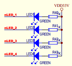 查找mini2440的原理图,找到LED部分的原理图: