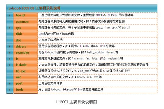 在这之前,必须熟悉下U-boot的目录树。比如board目录是存放根板子相关的文件(smdk2410.c等)