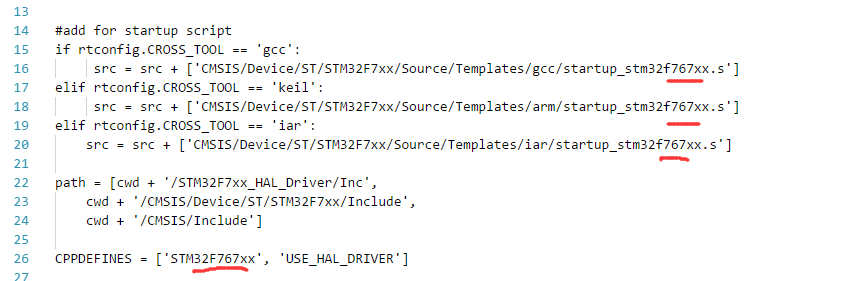 6.进入drivers子目录下,打开SConscript文件,这里说一下,3.0.3内的SConscript文件可以直接把该文件夹下所有源码加入工程,而这个最新的得自己加进去。修改如下: