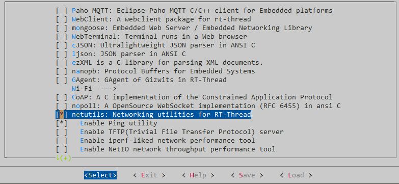 9.到RT-Thread online packages子条目下,选择IOT - internet if things 子条目下,打开ping工具,如下图所示: