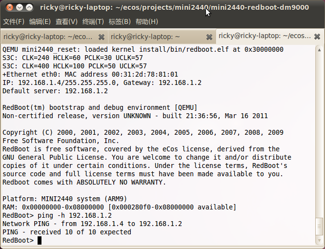 eCos在mini2440 Qemu的网络功能测试