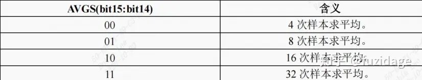 OVWREN (bit16):数据复写使能位,为 1 的时候使能复写功能,为 0 的时候关闭复写功能。 AVGS(bit15:14):硬件平均次数,只有当 ADC1_GC 寄存器的 AVGE 位为 1 的时候才有效