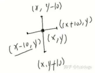 void fb_disp_cross(int x, int y, unsigned int color) { draw_line(x-10, y, x+10, y, color); draw_line(x, y-10, x, y+10, color); }