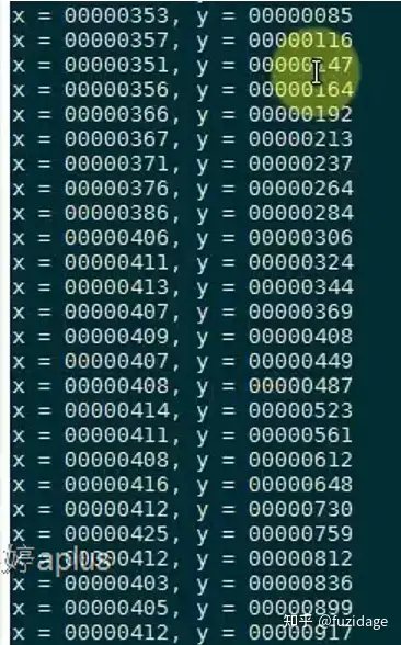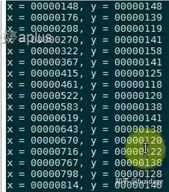 从左往右依次点击触摸屏,可以看到x坐标没有明显变化,y坐标反而线性变大。