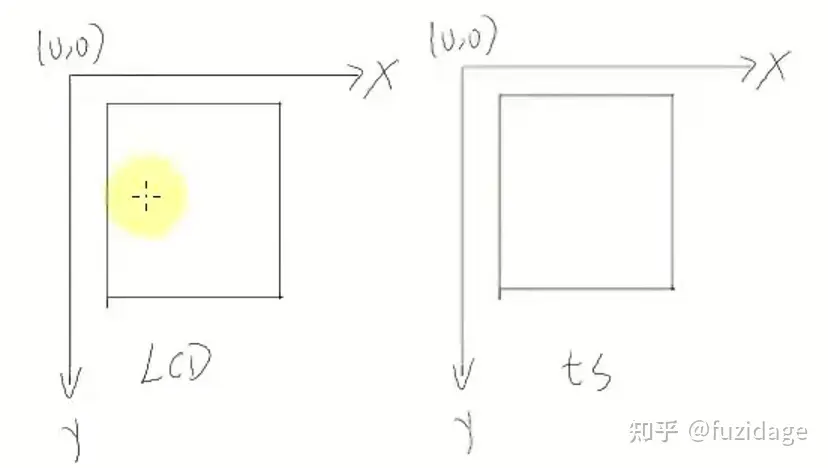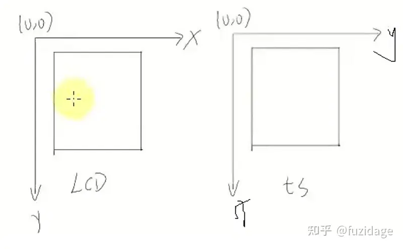 这里是由于硬件上xp与yp接反了,ym与xm接反了,如下图:但这里并不影响我们的时候,这里我们软件上可以进行x,y坐标的转换。