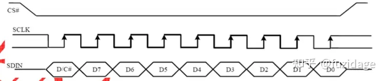 D/C即数据(Data)/命令(Command)选择引脚,它为高电平时,OLED即认为收到的是数据;它为低电平时,OLED即认为收到的是命令。先设置为命令模式,再片选OLED,再传输命令,再恢复成原来的模式和取消片选。