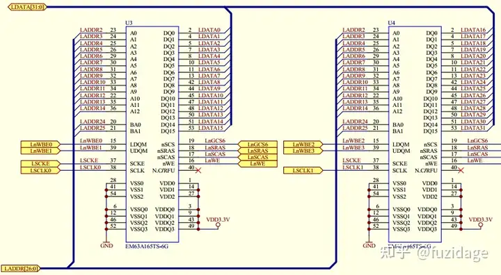 (2)再看看与2440连接的SDRAM原理图: