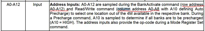 从SDRAM手册确定行列地址的数目,如下图: