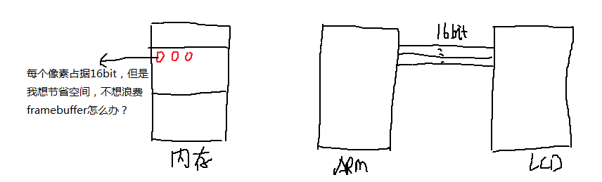 调色板就是一块特殊的内存,也许它就是放在lcd控制器里面,以后使用8bpp时,首先设置调色板。