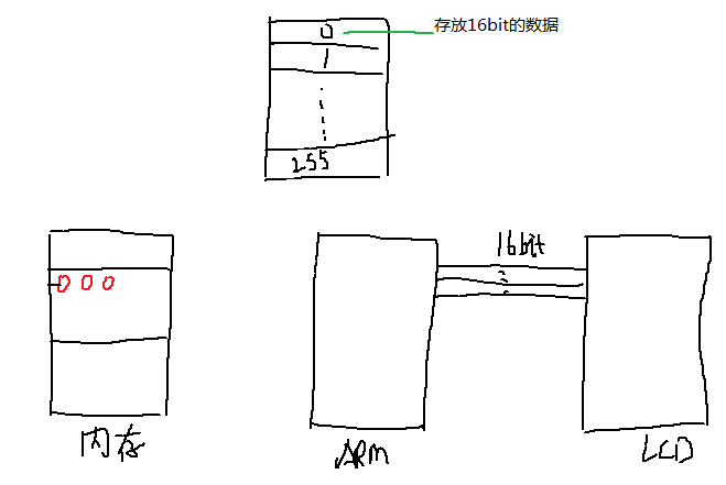 不管是2440,还是其他型号的ARM芯片。它们的LCD控制器的功能都是一样的,只不过存储器的操作稍有区别。