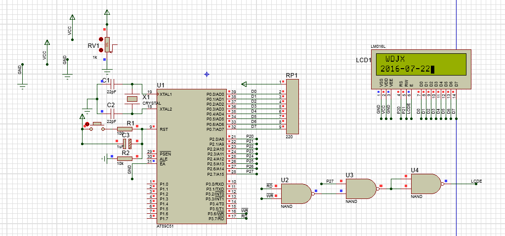 #include #include #define uchar unsigned char #define uint unsigned int #define LCDDDATA XBYTE[0xffff] //读数据地址 #define LCDXDATA XBYTE[0xfdff] //写数据地址 #define LCDDCOM XBYTE[0xfeff] //读命令 #define LCDXCOM XBYTE[0xfcff] //写命令 uchar idata s_GOOD[5]={'W','D','J','X',0x00}; uchar idata s_GOOD1[]={'2','0','1','6','-','0','7','-','2','2',0x00}; sbit bflag=ACC^7; void wait(void) { do{ACC=LCDDCOM;}while(bflag==1); } void init_lcd(void) { LCDXCOM=0x38; //设置模式 wait(); LCDXCOM=0x0f; //显示开关及光标设置 wait(); LCDXCOM=0x06; //显示开关及光标设置 wait(); LCDXCOM=0x01; //清屏 wait(); } void d_char(uchar a) //写入数据函数 { LCDXDATA=a; wait(); } void display(uchar x ,uchar idata *s) //显示函数 第一个变量是地址比如 0x80或0x80+0x40 第二个是数据 { uchar i=0; LCDXCOM=x; wait(); while(s[i]!=0x00) { d_char(s[i]); i++; } } void main(void) { init_lcd(); display(0x80+0x01,s_GOOD); display(0x80+0x40,s_GOOD1); while(1); }