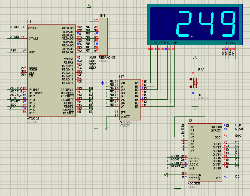 START = 0; //ADC转换启动信号,高电平有效, 电路中与ALE(地址锁存允许信号)连在一起
