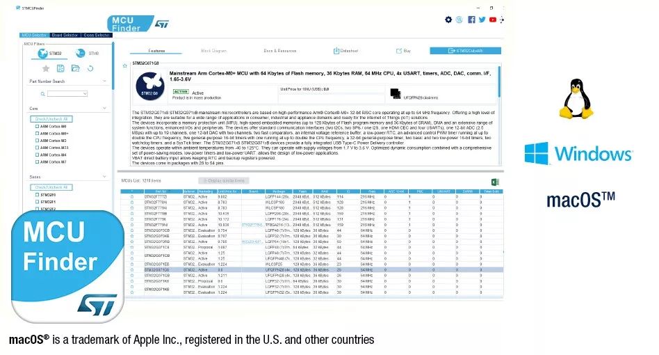 同时,STM32CubeMX集成了之前的选型功能(STM32 Finder):