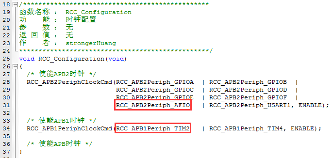 使能RCC时钟:RCC_APB2Periph_AFIO和 RCC_APB1Periph_TIM2;