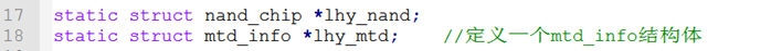 18 lhy_mtd->priv = lhy_nand; //私有数据为我们的nand_chip结构体