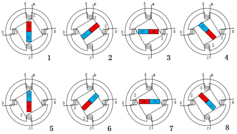 (3)改变脉冲的顺序,可以方便的改变转动的方向。