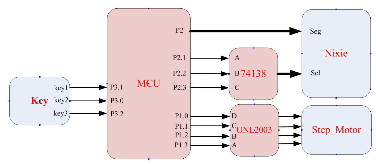 见《普中-2&普中-3&普中-4开发板原理图》:独立按键模块、单片机核心、动态数码管模块(包含74HC138)、五线四相步进电机模块。