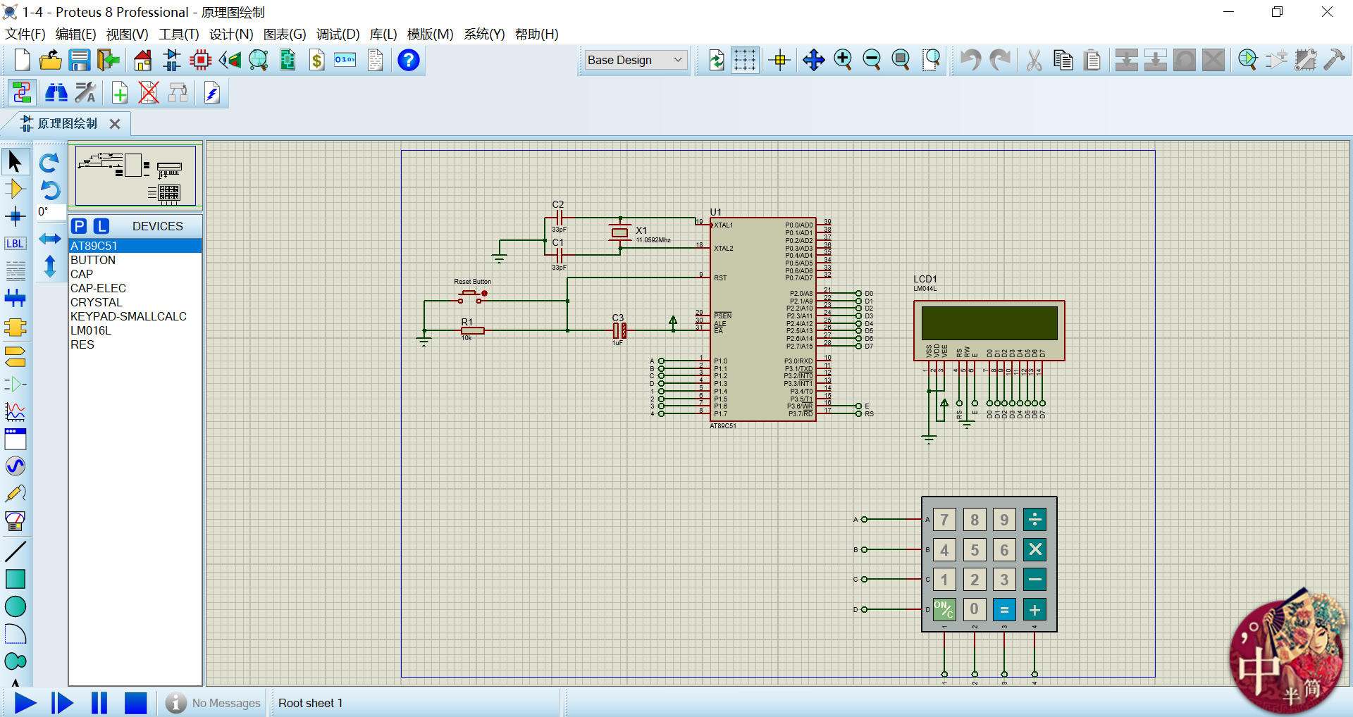 实现Proteus ISIS中的键盘矩阵与8051微控制器的接口。在上一个项目中,实现了LCD与8051微控制器的接口,可以在上面显示数据和不同的值,接下来的项目将从键盘上获取按键值,并在LCD上显示这些值。