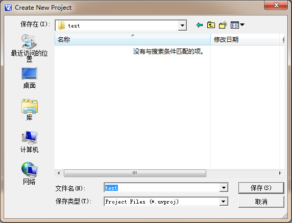 2)新建一个目录用于存放我们的工程文件,这样我用新建一个test目录:并且取工程名为test并保存: