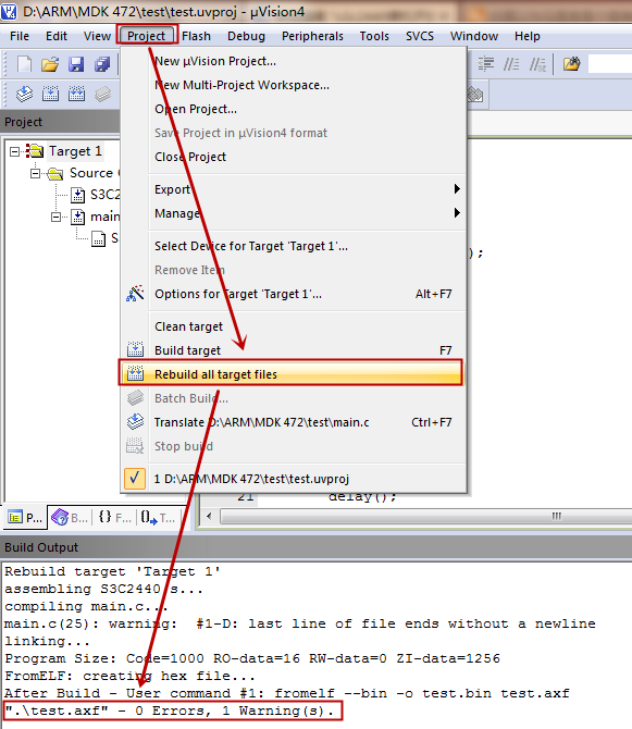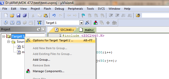 6)把所有c源文件加进工程之后,再选择Target 1的Optionsfor Target ' Target 1'进行相应的配置