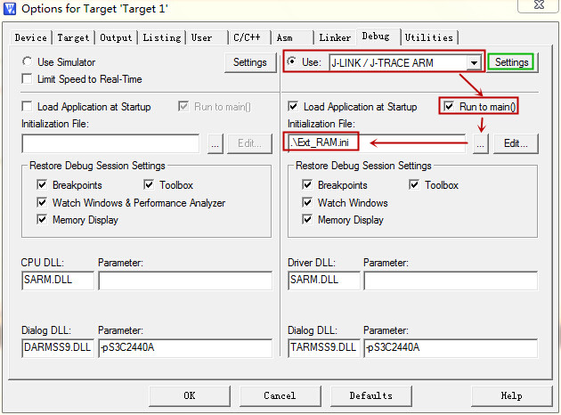 3)在InitializationFile选择之前修改的Ext_ARM.ini文件的路径