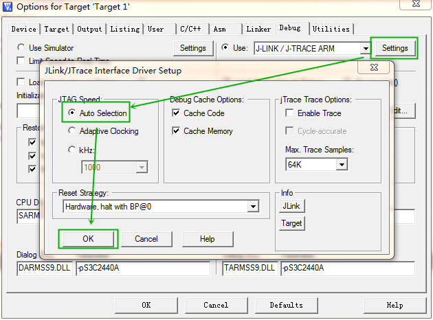 点击Settings按钮,设置JTAG Speed为Auto Selection,如下图