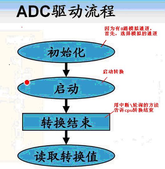 ADC驱动流程:1.初始化à2.启动à3.转换结束à4.读取转换值