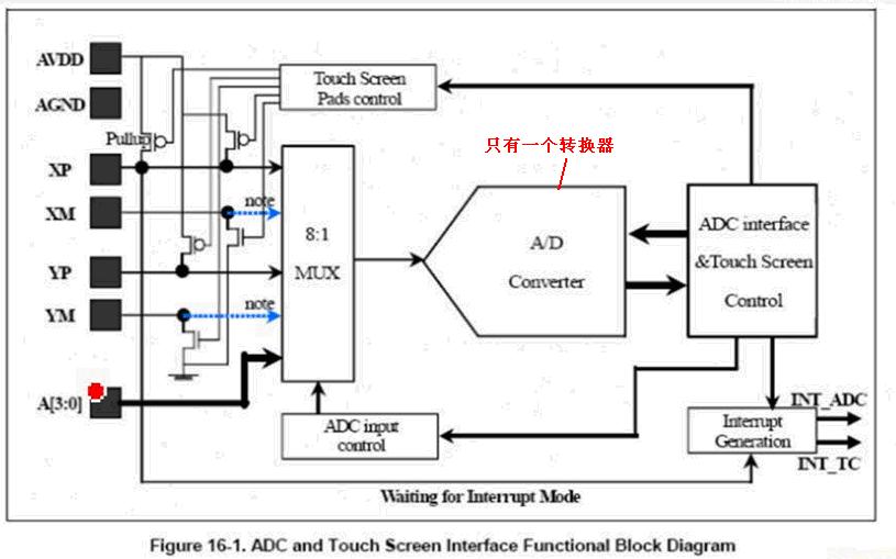 S3C2440芯片内部共有8路A/D转换通道AIN0~AIN7,但是转换器只有一个。