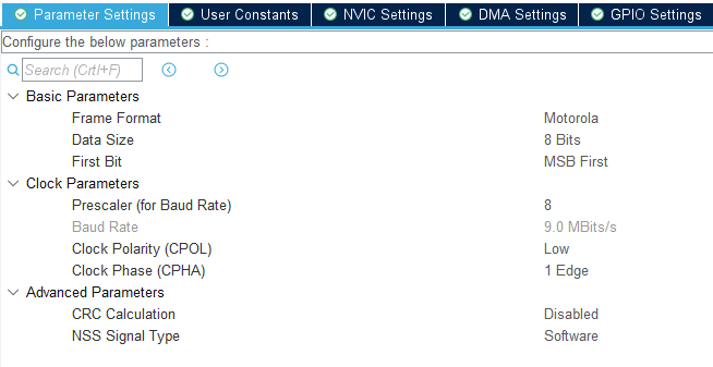 在上一篇文章可以看到控制一个码的周期在1.25us±300ns之间,现在把时钟配成9Mbit/s,这个的话每个码的周期大概就在889ns,和LED的周期略有误差;