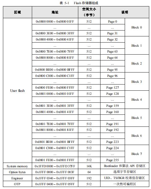 l System memory 区:用于存储 Bootloader 和算法 API,存储空间为14KB;