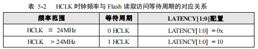 为保证 Flash 读取访问不出现异常或错误,当要改变 HCLK 的时钟频率时,必须按照特定步骤进行配置。