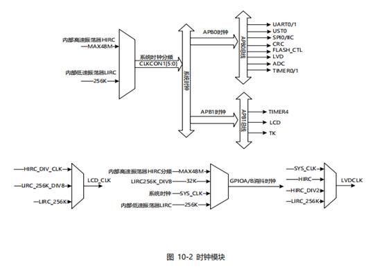 LIRC 振荡器担当一个低功耗时钟源的角色,它作为系统启动时钟为其他单元提供时钟。LIRC 时钟频率大约 256KHz。