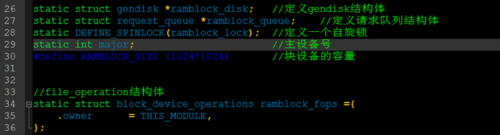 1.定义gendisk结构体与request_queue请求队列结构体,以及file-operation结构体