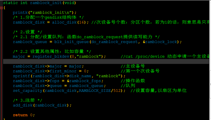 2):分配、初始化队列,并且指定队列读写函数do_ramblock_request函数。