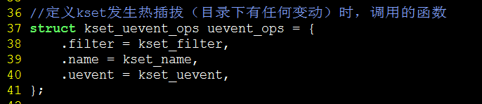 kset 包含kobject 和 一个kset_uevent_ops 热插拔事件结构体