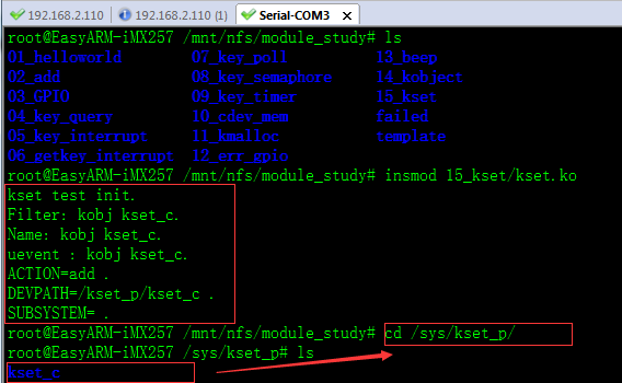 在 sys/目录下 ,产生一个 kset_p 的目录,子目录下还有一个kset_c