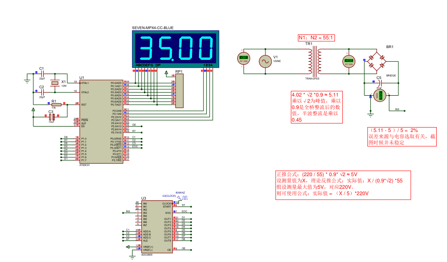 3. 图中有理论公式,大概公式可以使用,设X是读取到的电压:实际值=(X/5)*220
