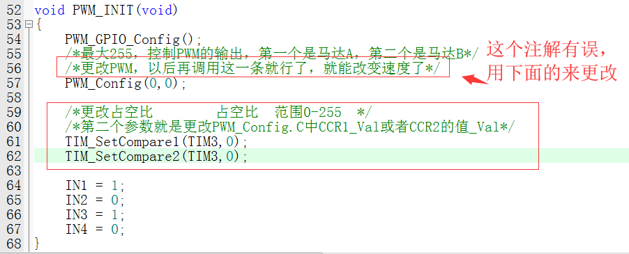更改注意: STM32程序移植之L298N电机驱动模块 引脚连接图 STM32引脚 L298N引脚 功能 PA6 ENA 马达A的PWM PA7 ENB 马达B的PWM PA2 IN1 控制马达A PA3 IN2 控制马达A PA4 IN3 控制马达B PA5 IN4 控制马达B 注意 电源输入12V L298N的资料在这里 程序移植,刚才已经移植成功了,上面的是资料 注意,控制PWM 控制方向 在第二点的资料中只有IN1和IN2是因为原理是一样的,L298N总共有两个输出,所有有两个PWM输入还有IN1到IN
