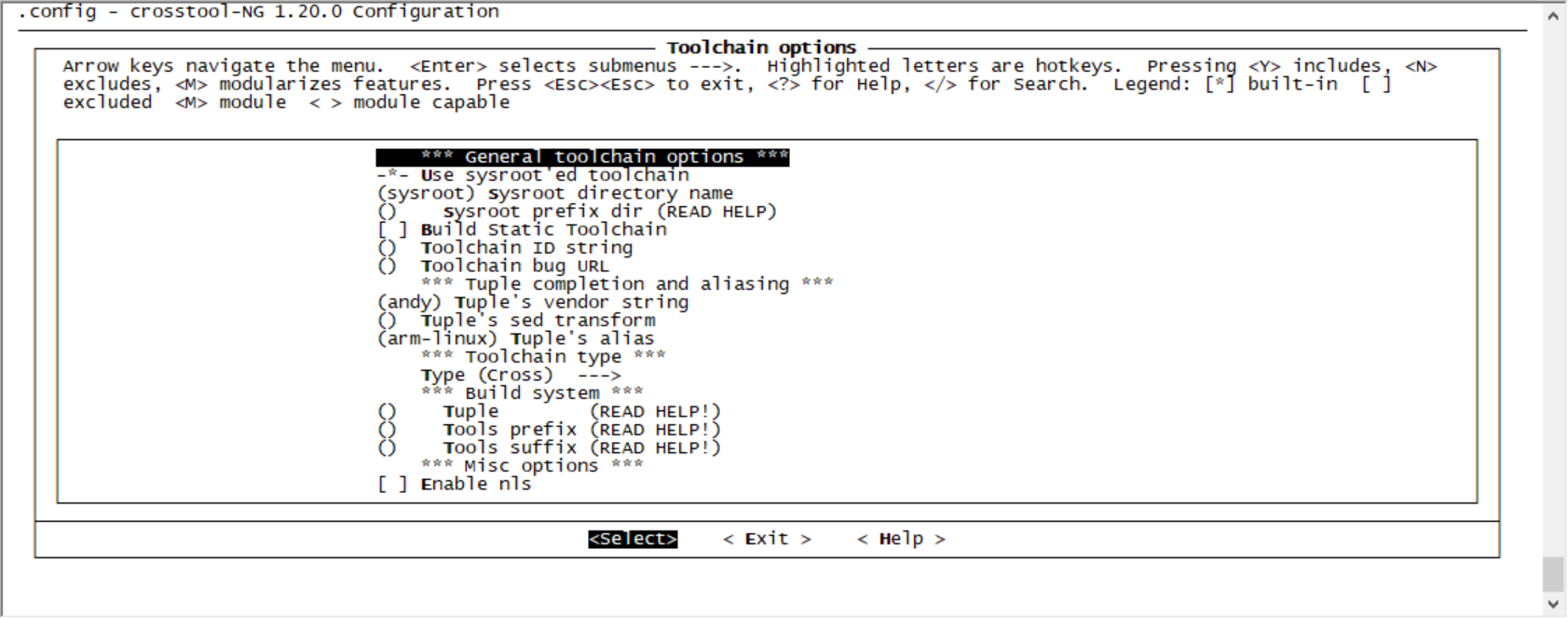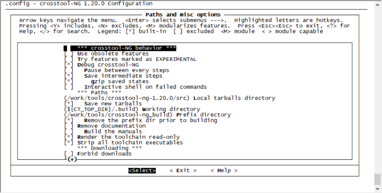 然后执行:ct-ng menuconfig可以看到如下的配置画面