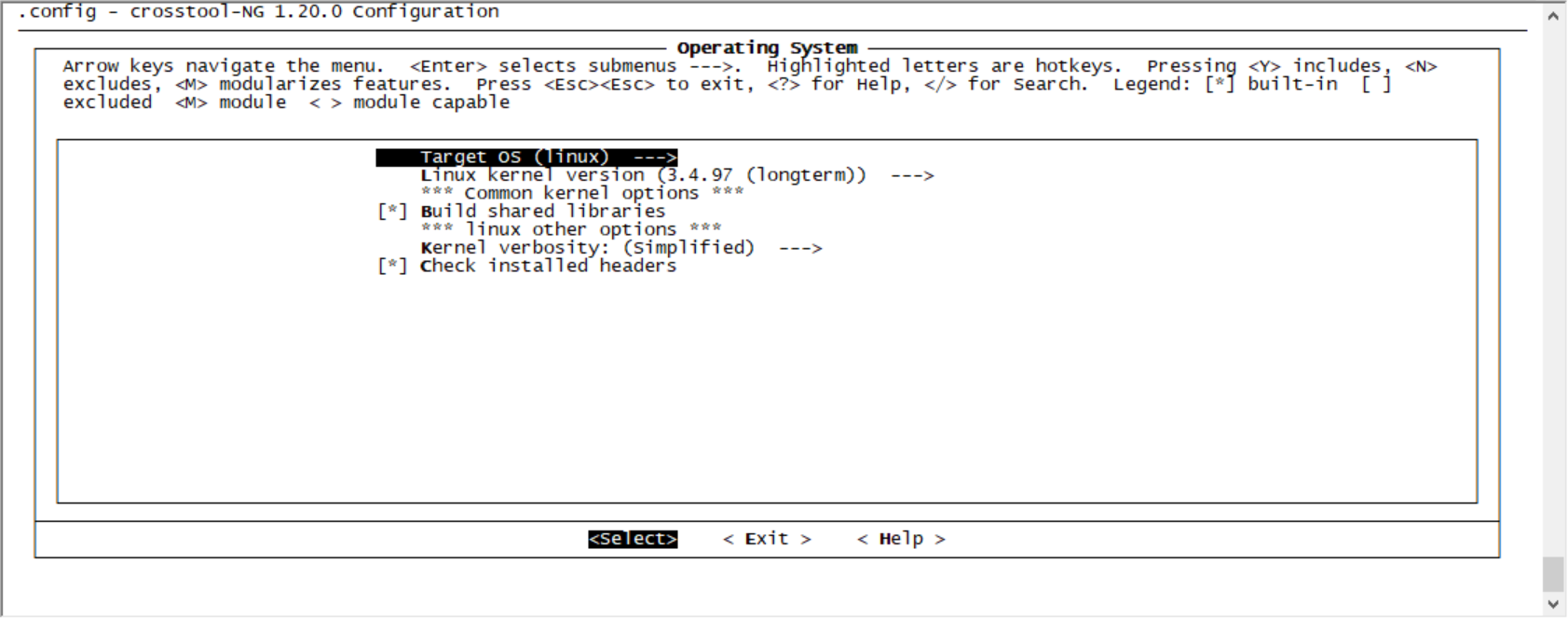 进入Operating System --->菜单。选择编译的内核版本。这里使用默认的参数
