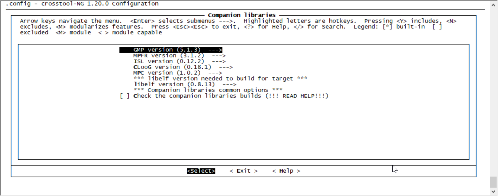Companion libraries --->菜单,编译工具,GMP是实现任意精度算术运算的软件包,可以完成有符号整数、有理数和浮点数的运算。只要计算机的内存满足需求,GMP的运算精度没有任何限制。MPFR是一个用于高精度浮点运算的C库。默认参数