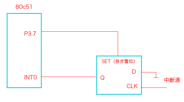 (PS:当然这种情况可以引入锁存器来解决,只要锁住INT0的信号为低电平就可以了,比如书上采用了D触发器,把外部中断接入D触发器的时钟断,D触发器的输入口接地,Q端接INT0,然后随便拿一个P口置D触发器异步置位端,这样一旦有中断响应,D触发器的输出为0,然后中断处理程序给对应的异步置位端1的信号,这样就可以保证在整个中断处理程序之内INT0的引脚都是1(撤销IE),中断处理程序结束后再把异步置位端为0,以便接受其他中断)。