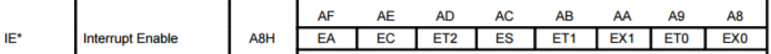IE0/IE1和IT0/IT1在TCON寄存器(88H),而EX0/EX1,EA在IE寄存器(A8H)