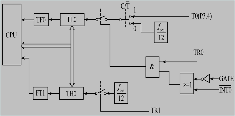 GATE位是计数器门控制位:当GATE = 0时,只要启动TR0/TR1定时器就开始工作。当GATE = 1时,还需要一个外加条件即INT1/INT0为0时才会启动计数。